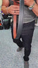 Model is 5’10” (178 cm) and wearing the Men’s Genuine Leather Ratchet Belt, adjusted to size 34, to showcase its sleek fit, automatic locking buckle, and customizable length for everyday comfort.